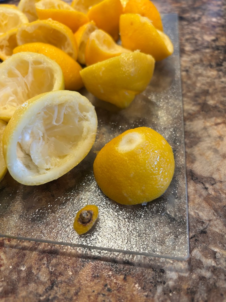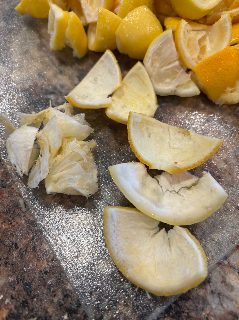If you’ve been following by blog, you’ll know that I’ve been trying to cut many pre-packaged food and preservatives from our diets. I’m off to a great start with making many staple items from scratch. In part one of this series, I made my own lemon juice and canned it in order to cut out the preservatives that are added to packaged lemon juice. I also mentioned that I wanted to challenge myself to use every part of the lemon with zero waste. In this blog post, I’ll be tackling what to do with all of the lemon rinds that were left over from juicing them.