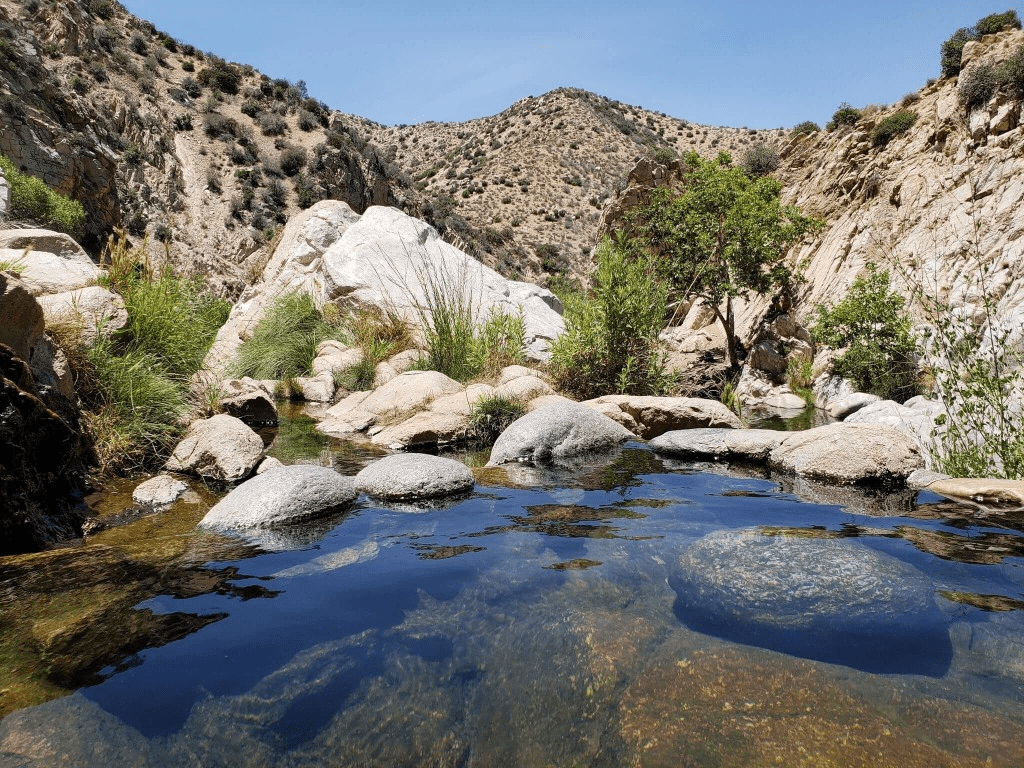 Deep Creek Hot Springs is a remote and adventurous hot spring experience in Southern California. Located in the high desert near the town of Apple Valley, this series of pools is nestled beside a flowing creek in a granite canyon. The 3-mile hike in (and out) is moderately strenuous and should be avoided in summer due to extreme heat.