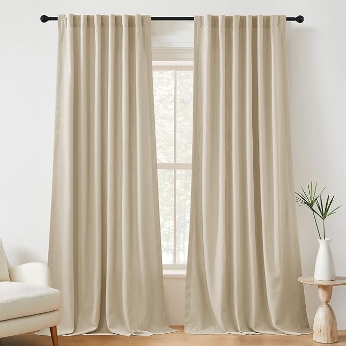 Nothing elevates a room faster than proper window treatments—and these faux linen curtains are game-changers. The fabric has a soft, high-end texture that diffuses sunlight beautifully, creating a warm, ambient glow during the day. What makes them feel extra luxe is the pinch pleat design, which gives the illusion of custom tailoring. Unlike flat panel curtains, the pinch pleats add fullness and depth, mimicking designer drapery at a fraction of the cost.